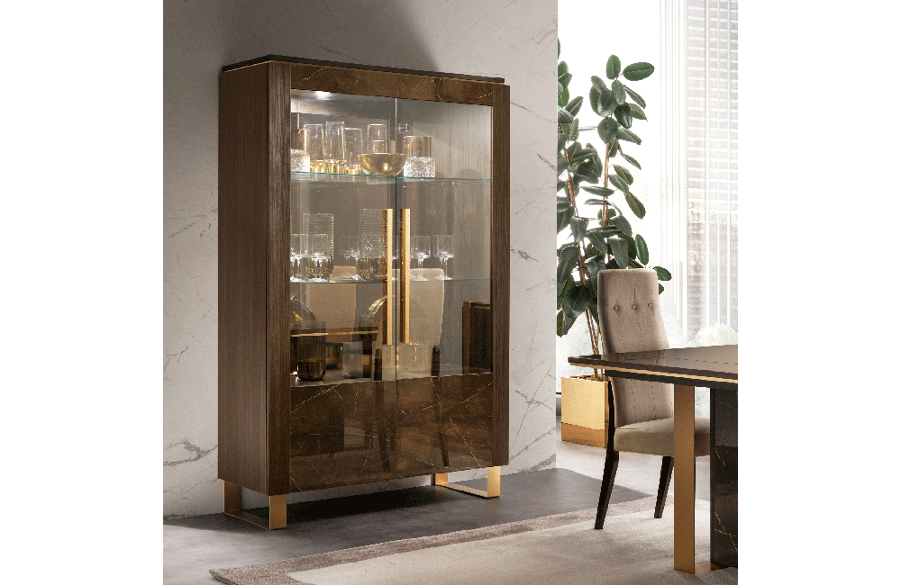 Essenza embodies contemporary elegance in small details that define the research for aesthetics, accomplished to create every piece of furniture. The concept is inspired by the classic / contemporary dualism, and by the contrasting textures of two precious finishes, embellished by elegant golden details. The complete collection is enhanced by the satin-finish golden elements used for the metal handles. Essenza is an expression of elegance, value and functionality.
