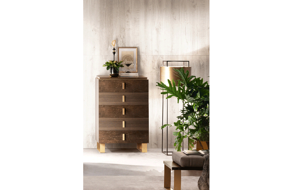 Essenza embodies contemporary elegance in small details that define the research for aesthetics, accomplished to create every piece of furniture. The concept is inspired by the classic / contemporary dualism, and by the contrasting textures of two precious finishes, embellished by elegant golden details. The complete collection is enhanced by the satin-finish golden elements used for the metal handles. Essenza is an expression of elegance, value and functionality.