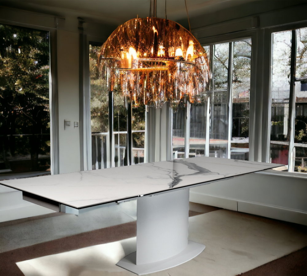 Revealing its luxurious character, the BRUNO Dining Table invites you to dive into an atmosphere of pure sophistication with its squared form. Pairing a unique, luxurious ceramic top with a contrasting steel base, the BRUNO Dining Table brings grace and modern luxury to any dining space.