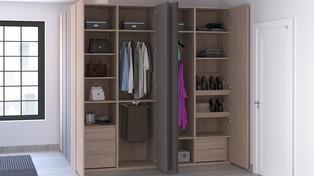 Roble Denver Body: The warm, earthy tones of Roble Denver form the body of the wardrobe, providing a sturdy and attractive base that adds a touch of natural elegance to the room.
