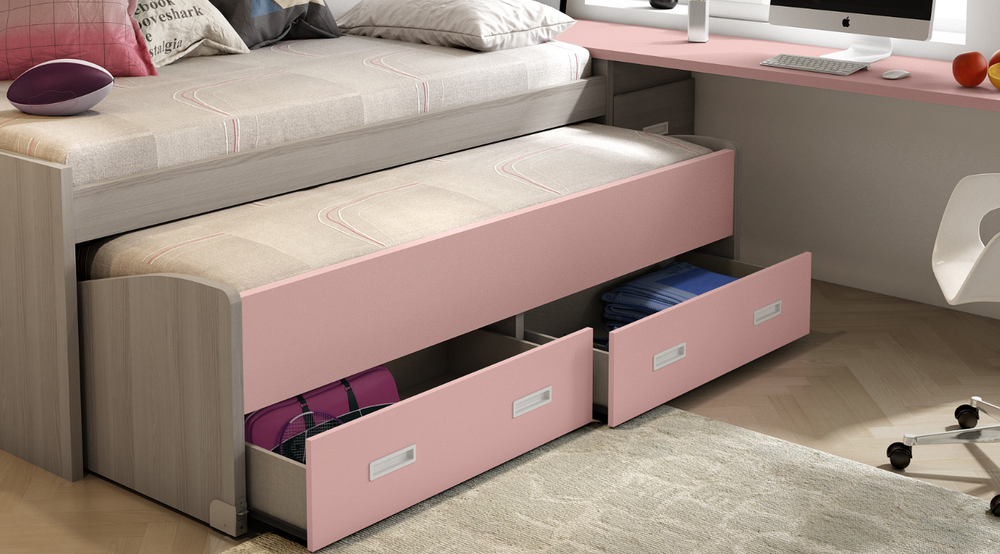 Chic and Playful Palette: Iron Oak body with accents in Rosa Nube and Blanco, offering a stylish yet whimsical touch to any youth bedroom.