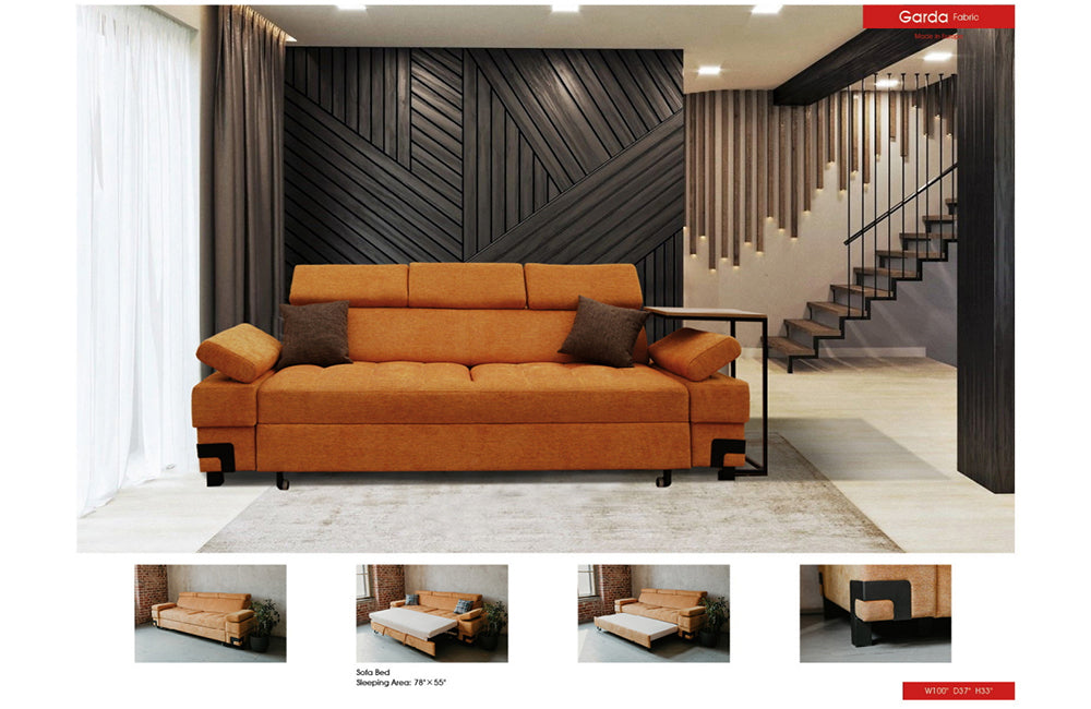 Comfy all day (and night). The Garda Sofa Bed, set on a sturdy steel frame and metal legs, has a deep high-density foam seat that pulls out with a simple slide-out sleeper mechanism. Rest easy.