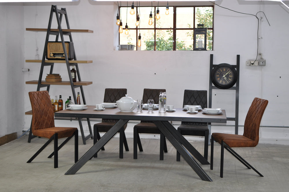 IRVIN elegant and sophisticated chair alludes to modern industrial decor with its distressed look. Shaped with simple clean lines, it is upholstered in leather with a foam-padded seat for extra comfort. Crafted with atypical shaped metal legs to support the entire style, it ensures strength and stability.