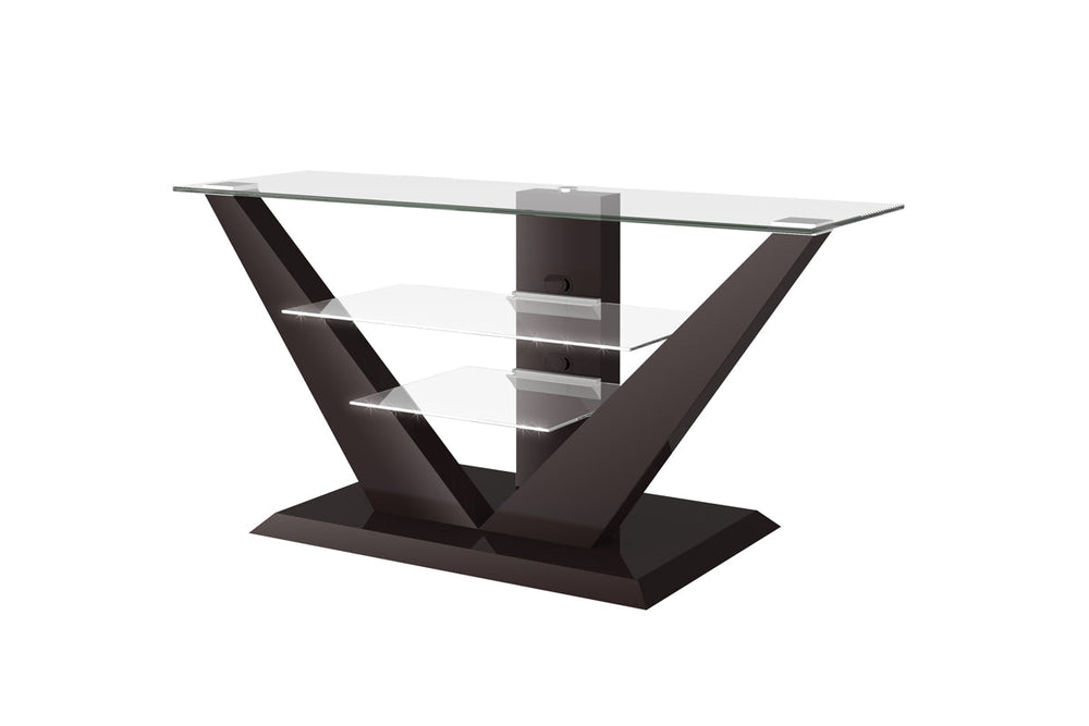 Update your home with the LUNA TV Stand with Mount for TVs up to 65". It's an ideal choice to bring a sense of warmth to your home's interior. High gloss finishes and tempered glass shelves will provide a modern touch to this contemporary TV stand while offering support for all your components. The two generous open shelves create storage and display space for your devices, media and other items. Cable management is also included. Available in different colors.