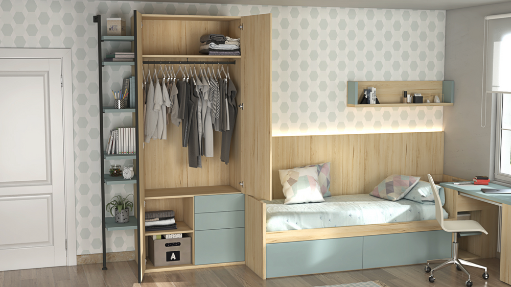 Exclusive Wood Finishes in Aqua and Haya Gala: Choose from our vibrant Aqua or warm Haya Gala wood finishes to personalize the space and reflect your teen’s unique style. These finishes bring a fresh and contemporary look to the room, complementing any décor theme.