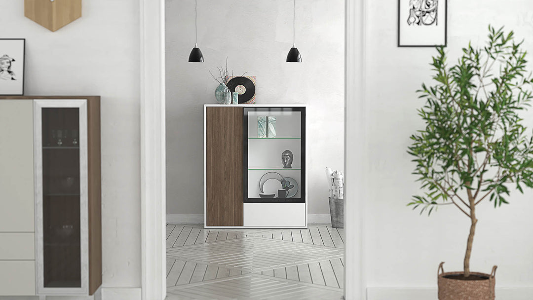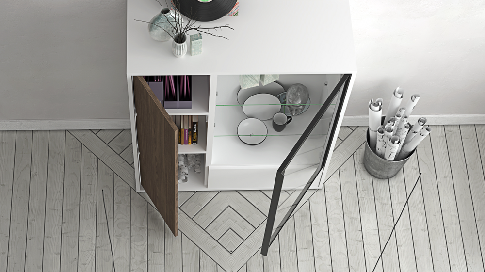 Mangano Dining room furniture set consists of 2 door china, table with 2 extension, chairs, 3 door buffet and mirror. This sophisticated set blends harmoniously into modern interiors and will become a stylish solution for any dining area. Popular white and grey combination of colors.