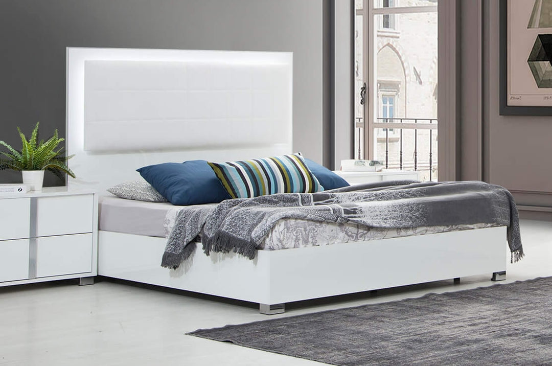 Modern headboard although manufactured with numerous materials usually difficult to combine offers a soft, elegant and cozy bed look.