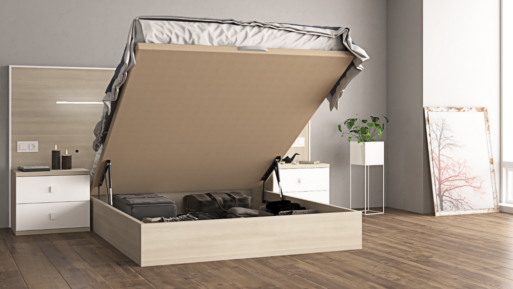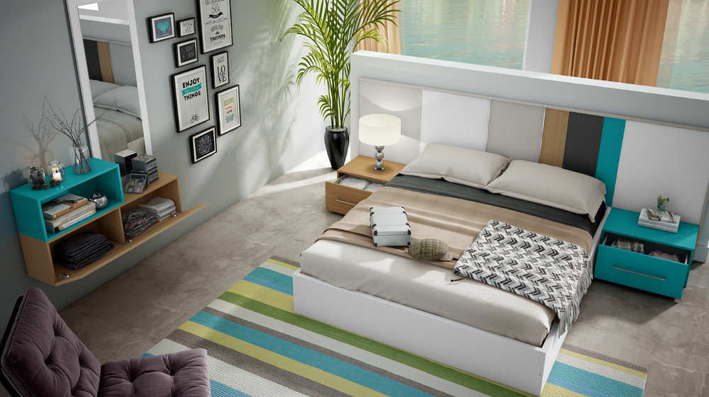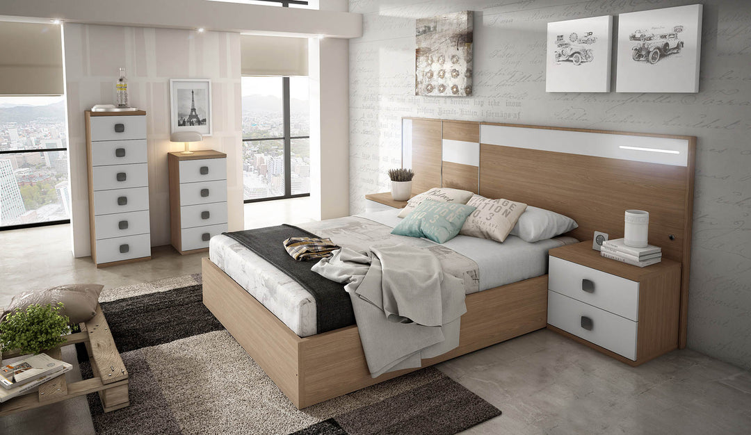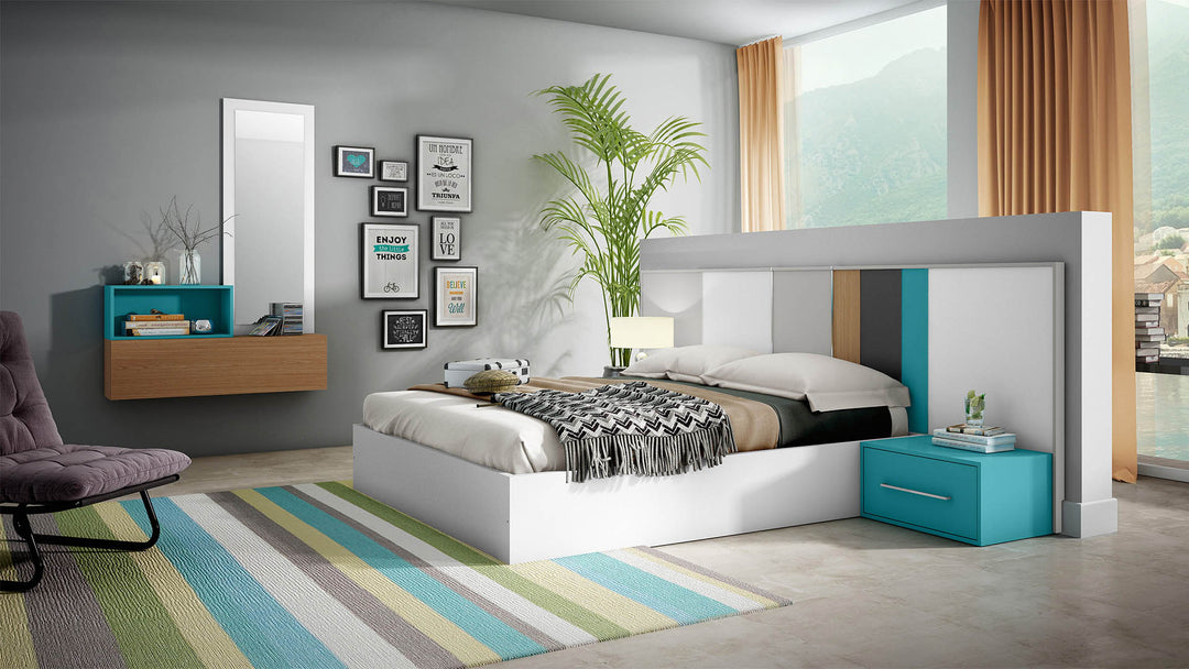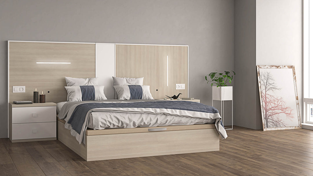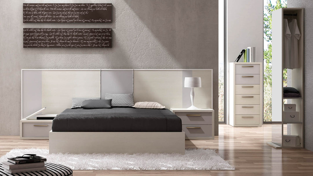Modern headboard although manufactured with numerous materials usually difficult to combine offers a soft, elegant and cozy bed look.