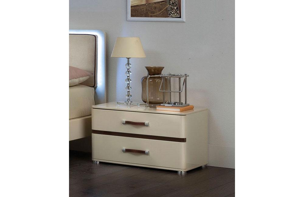 Natural WALNUT wood veneer with White high gloss lacquer. Eco Leather in white.