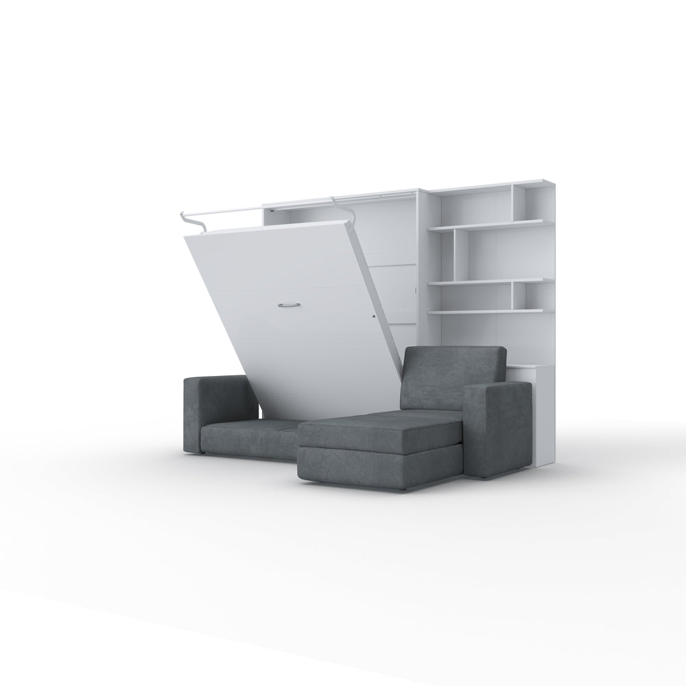 Murphy bed European Full XL Vertical with a Sectional Sofa and a Bookcase Invento. SALE