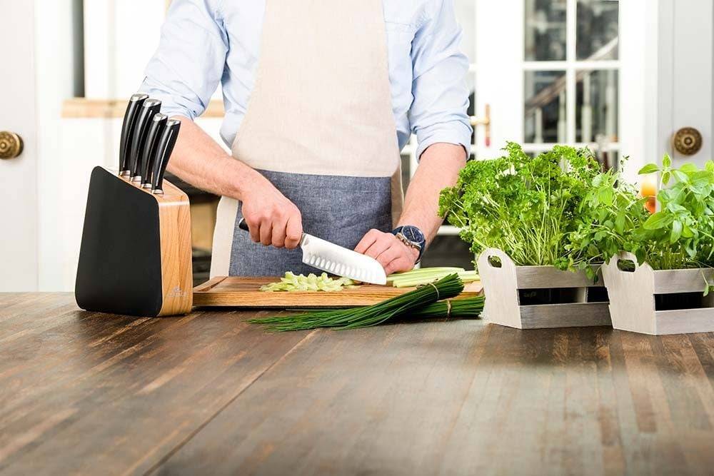 - The Loft set of knives comes with an elegant, varnished block made of beechwood